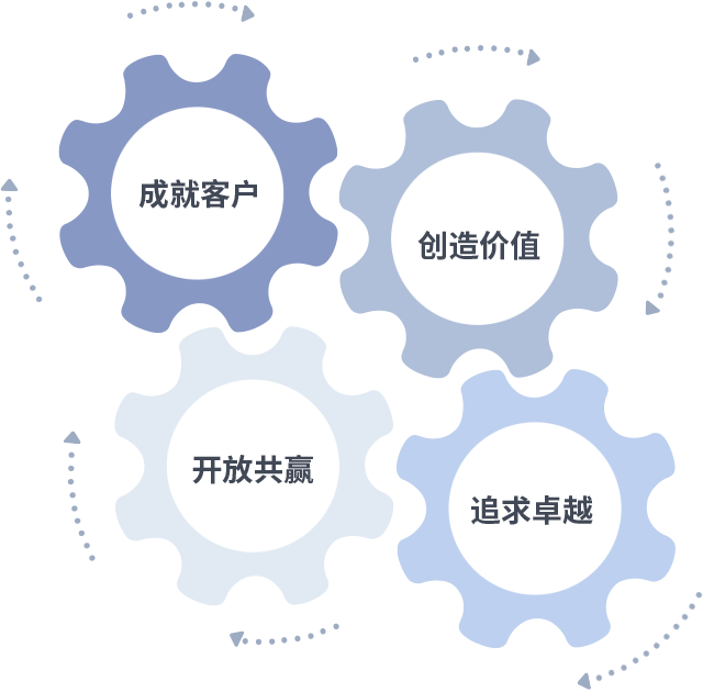 成就客户是一切决策的出发点,创造价值是衡量所有工作的标准,追求卓越是188·金宝搏(中国)有限公司做事做人的态度,开放共赢是188·金宝搏(中国)有限公司的格局也是最终的结果。价值观的齿轮环环相扣,推动着组织里的每个人不断向前。